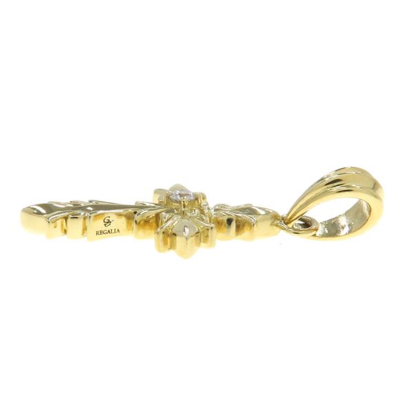 「王位を象徴する宝物」という意味のラテン語から名付けられた「REGALIA-レガリア-」より、クロスデザインのトップが入荷しました。定番のクロスデザインとなりますが、細かくデザインが施され存在感を主張します。 さらにセンターには小さなダイヤモンドがセッティングされ、オシャレさが増しています。 小振りなサイズ感となりますので、男性も女性もご利用いただけますよ。 是非この機会をお見逃しなく。
