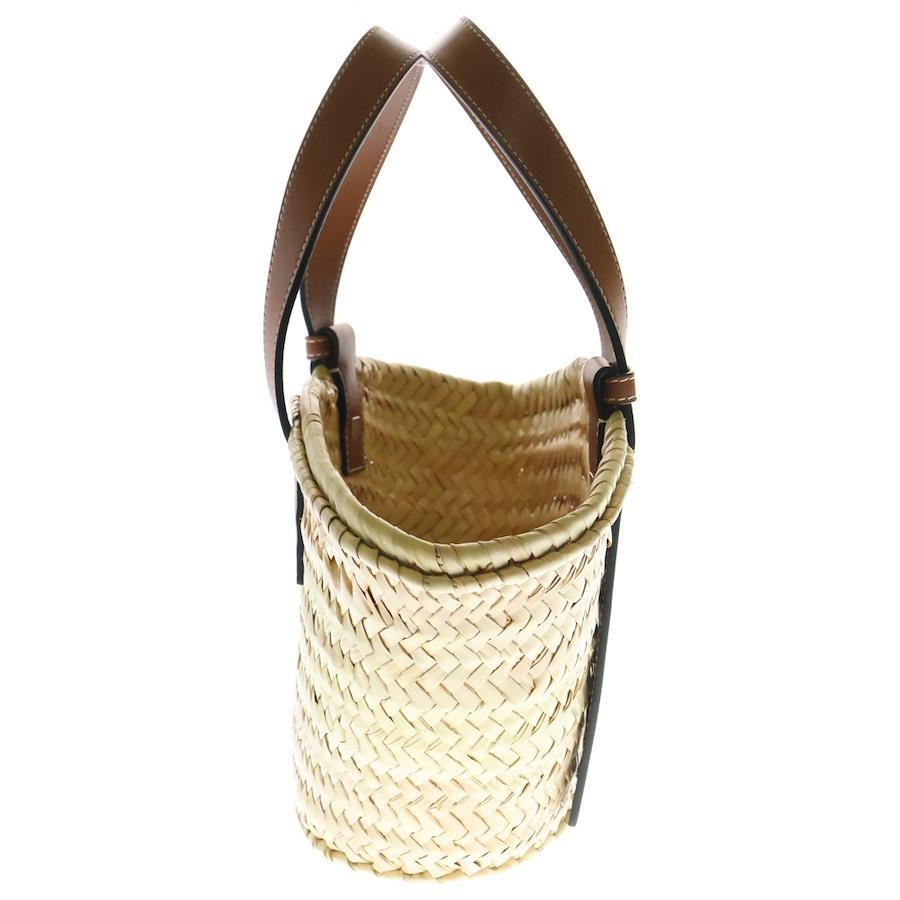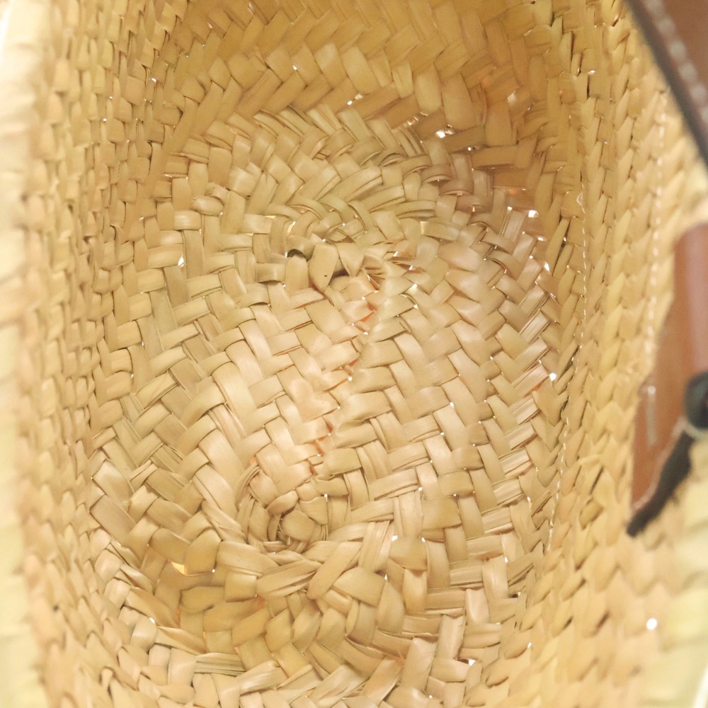 [モデル]かごバッグ ハンドバッグ ミニトートバッグ スモール ストロー×レザー ブラウン×アイボリー
