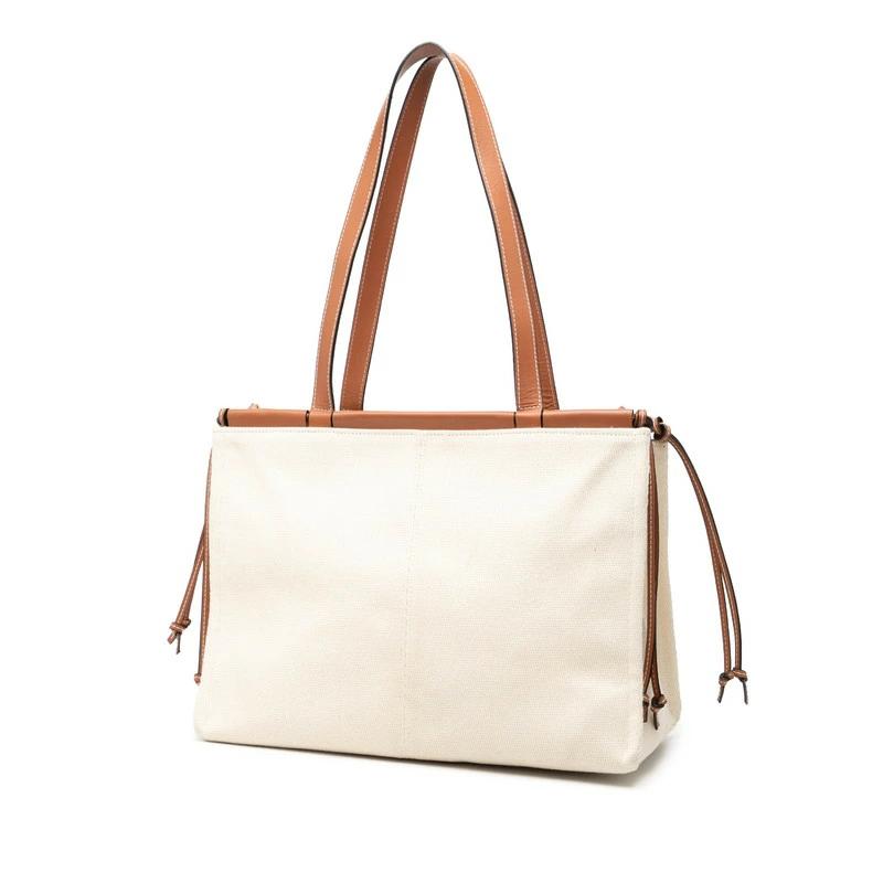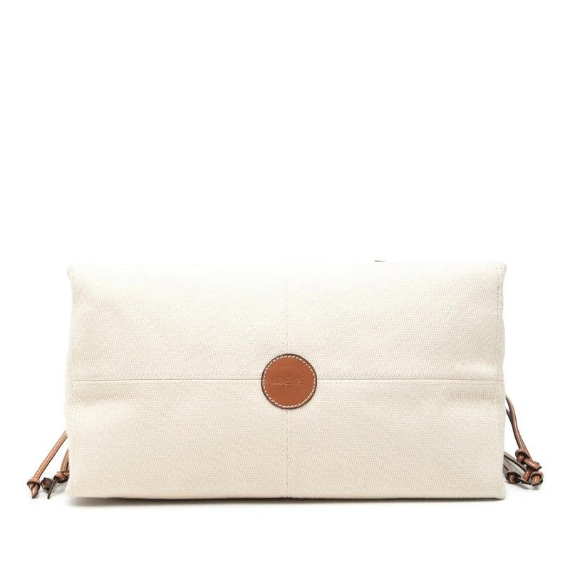 - ロエベ アナグラム ショルダーバッグ ホワイト ブラウン キャンバス レザー レディース LOEWE 【中古】