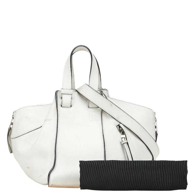 Pre-owned LOEWE Anagram Hammock small handbag/shoulder bag in white leather. Women's.