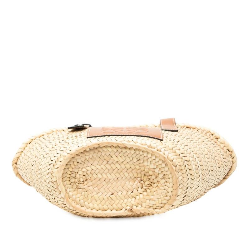 Pre-owned Loewe Anagram Basket Bag, small handbag, beige, brown raffia and leather. Women's.