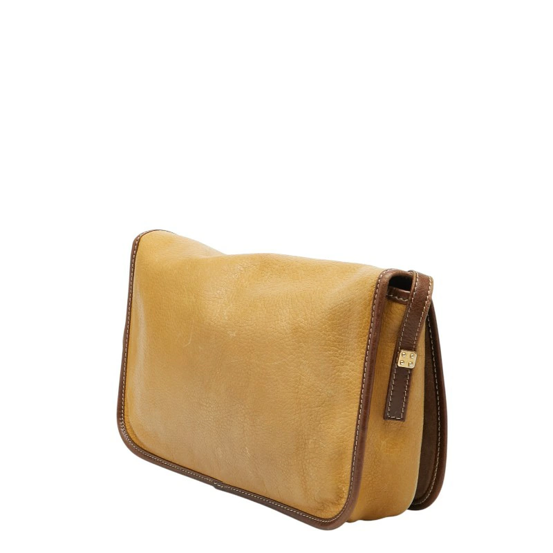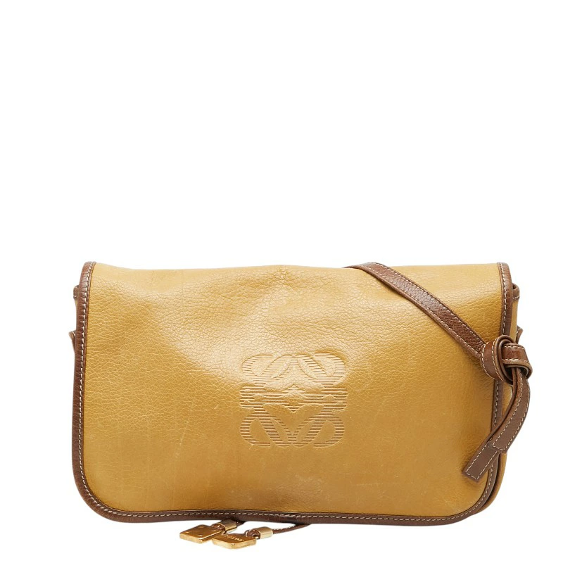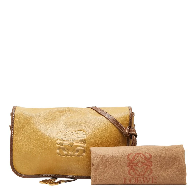 - ロエベ アナグラム 斜め掛け ショルダーバッグ イエロー ブラウン レザー レディース LOEWE 【中古】