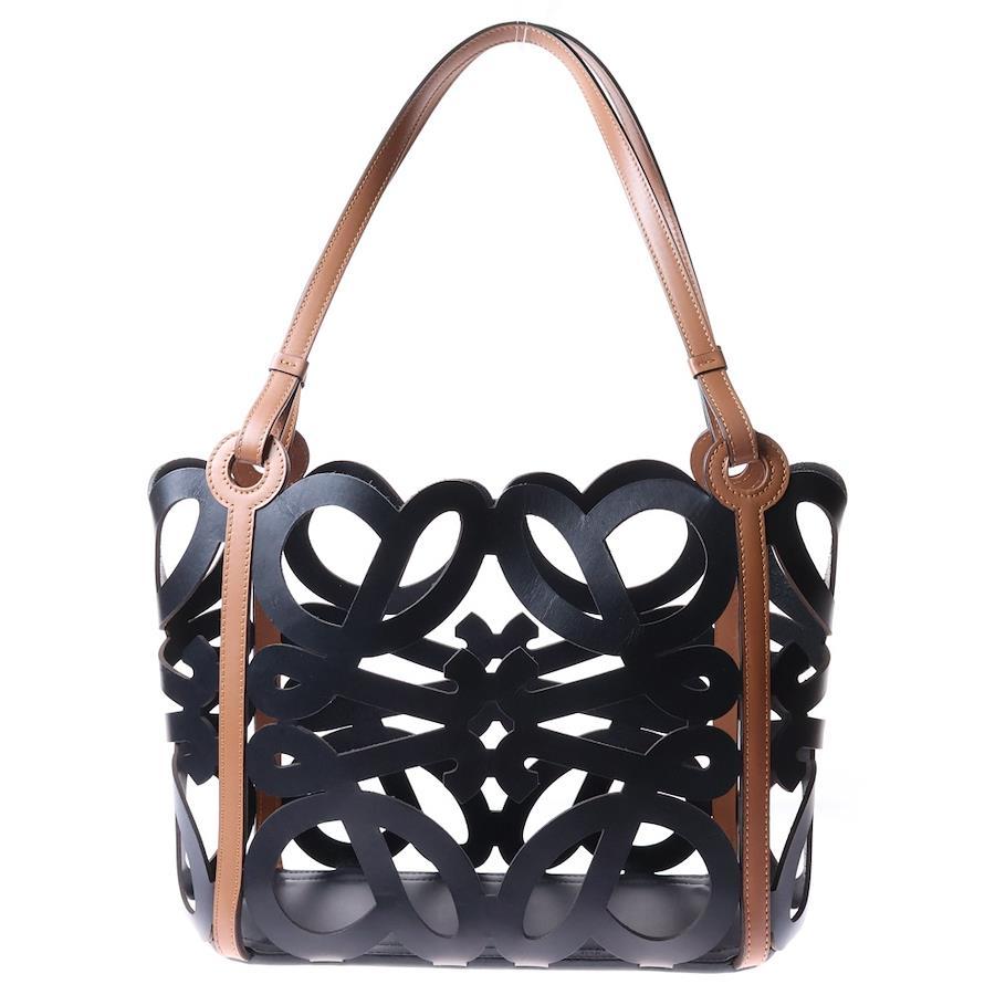 Loewe Cutout Tote Bag in Brown and Black Leather and Canvas - Brown/Black