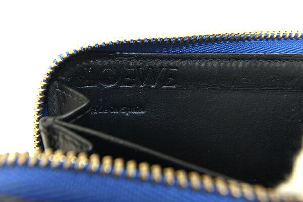 ロエベコインケースリピートブルーレザー中古小銭入れミニ財布コンパクトウォレットラウンドファスナーレディースアナグラムLOEWE