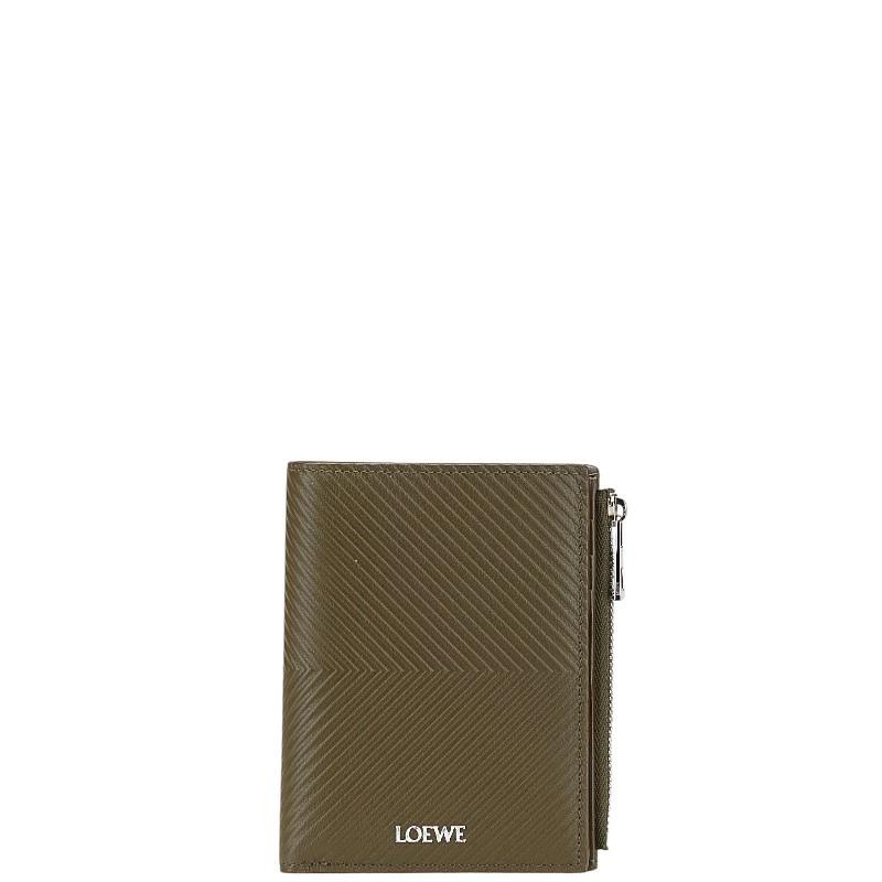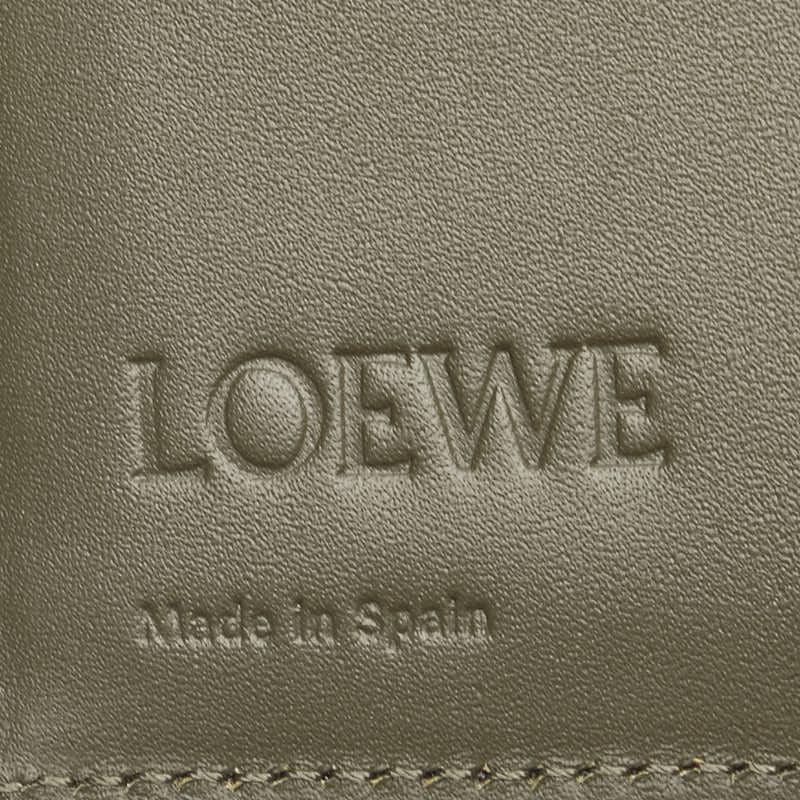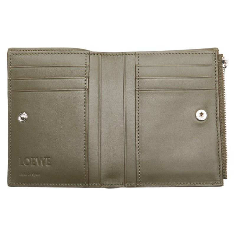 Pre-owned Loewe Slim Compact Bi-fold Wallet C779W73X01 in Khaki Green Classic Calfskin. Men's.