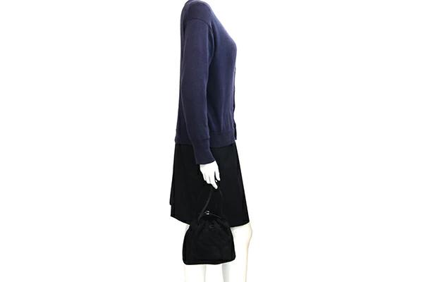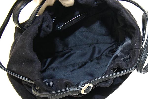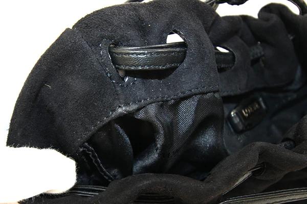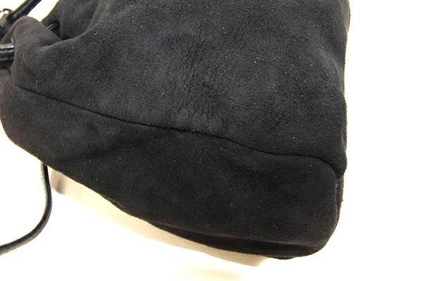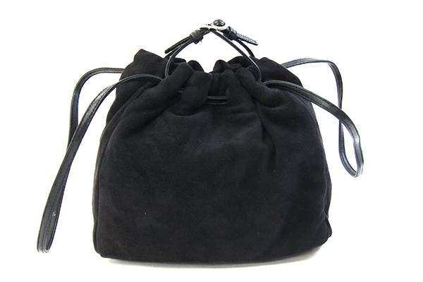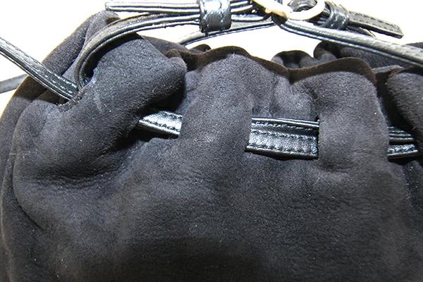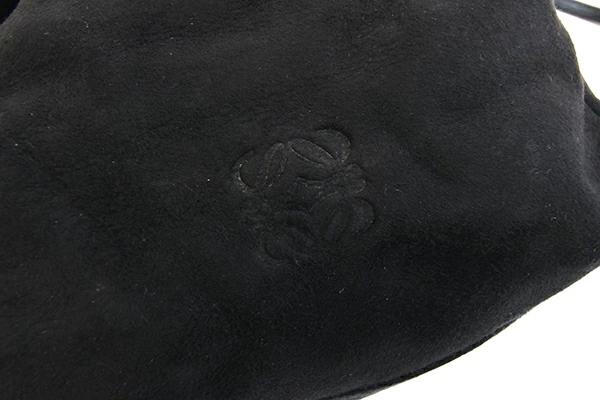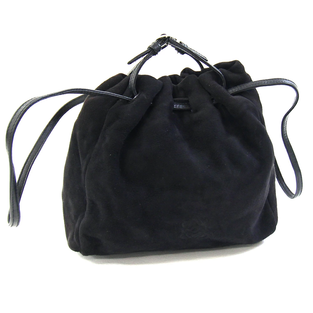 Vintage Loewe Anagram handbag in black suede with a drawstring. Pre-owned. Women's mini bag.