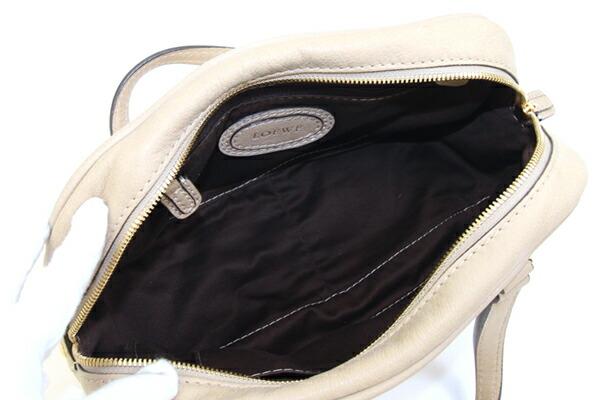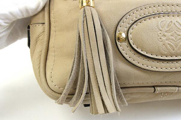 ロエベハンドバッグアナグラムマドリードライトベージュゴールド金具レザー中古DFS限定ミニボストンバッグフリンジタッセルレディースLOEWE