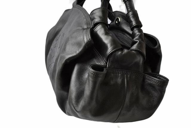 ロエベより、とても手触りのよい、シープスキン素材のハンドバッグです。ロエベ伝統の高級感を漂わせます。独特なデザインで、セレブの間で、人気の高い舟形トートバッグ 「アイレ」。前面には大きなロゴマーク、が可愛くデザインされております。このバッグ一つでワンランク上のセレブカジュアルに!合わせやすいブラックで、カジュアルからフォーマルまでどんな服装にも合わせやすく重宝します。
