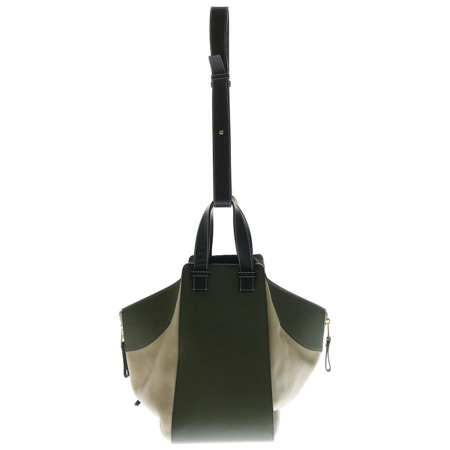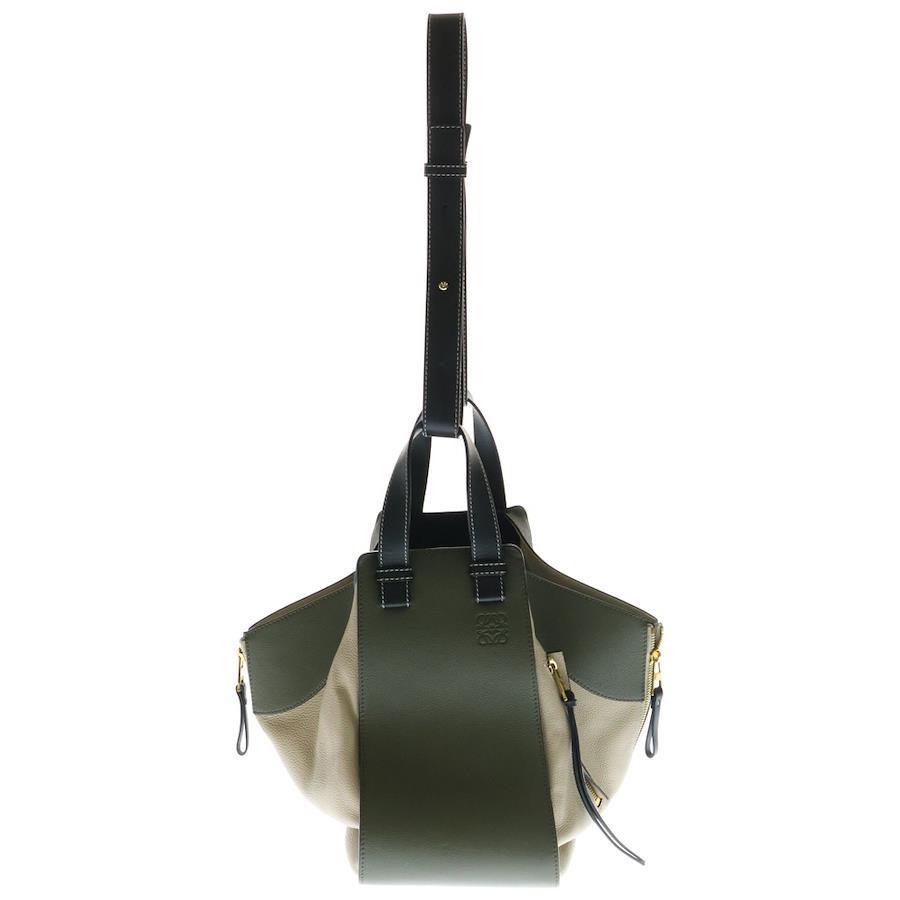 [モデル]ハンモック スモール ショルダーバッグ ハンドバッグ ブラック×カーキ×ベージュ レザー×キャンバス
