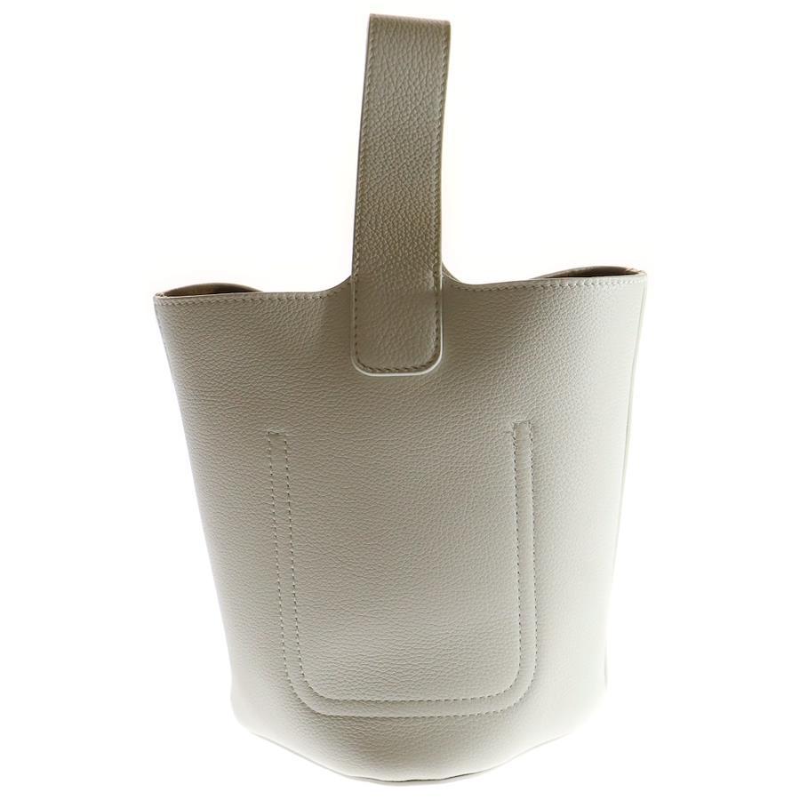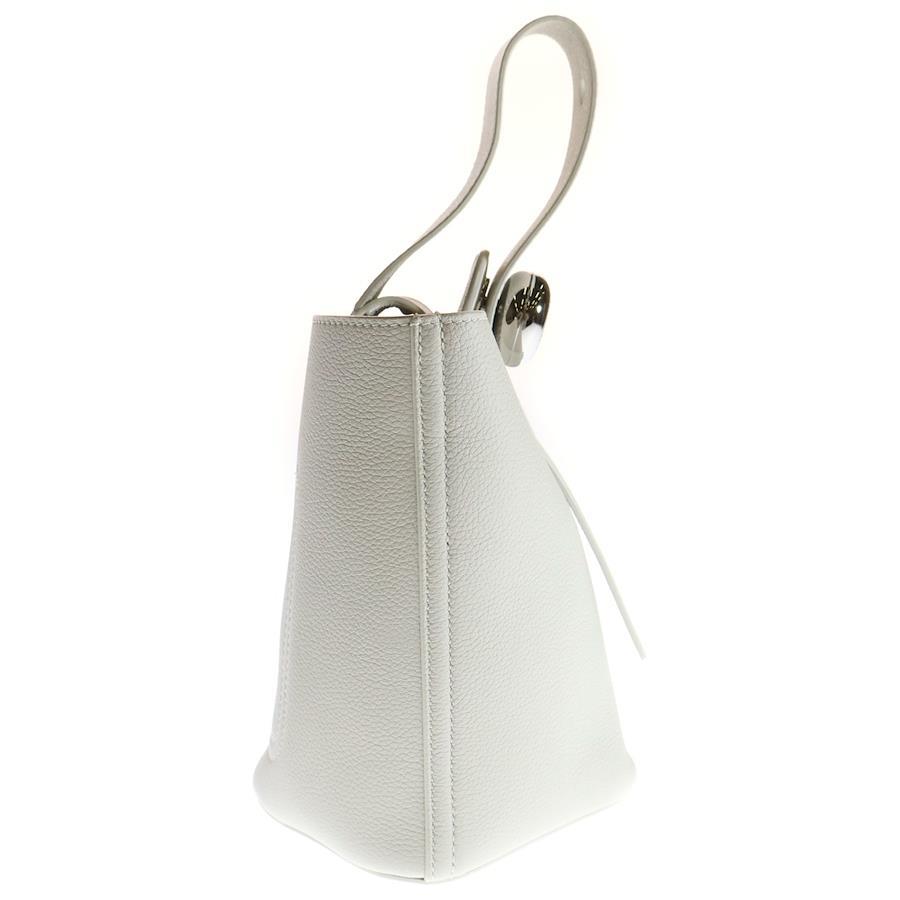 [モデル]バケットバッグ ミニ ホワイト レザー 2WAY ハンドバッグ ショルダーバッグ