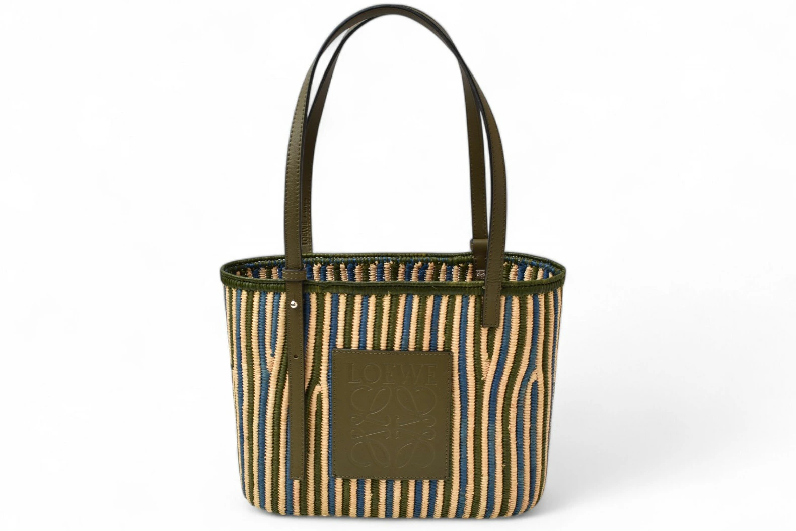 商品説明 | ロエベより、トートバッグです。バスケットバッグ/カゴバッグ スモール 日本未発売カラーの落ち着いたカーキ系のレザーハンドルと、ナチュラルなラフィア素材の組み合わせが洗練された印象を与え、都会的な抜け感を演出。タウンユースからリゾート、ワンマイルコーデまで幅広く活躍してくれる一品です。 |