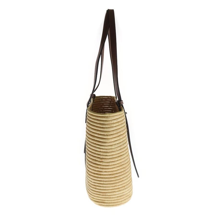 [モデル]バスケットバッグ スモール ハンドバッグ カゴバッグ ブラウン×ベージュ シルバー金具 ストロー×レザー