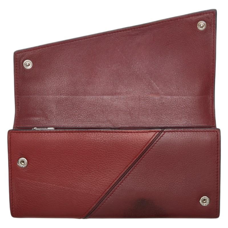Pre-owned Loewe Puzzle Continental Wallet in Red and White Leather. Women's.