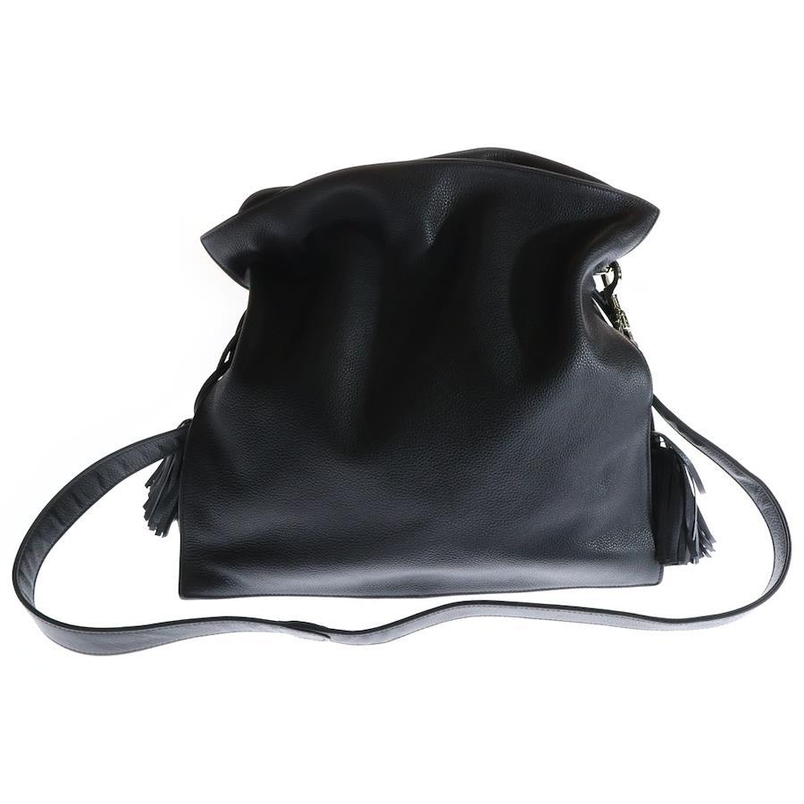 Loewe Flamenco Shoulder Bag with Fringe, Black Leather, Silver Hardware - Black