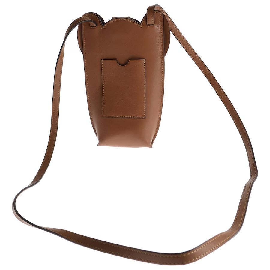 [モデル]ポケット アナグラムロゴ レザー フォン ショルダー ポーチ クロスボディ バッグ ブラウン C623B02X04