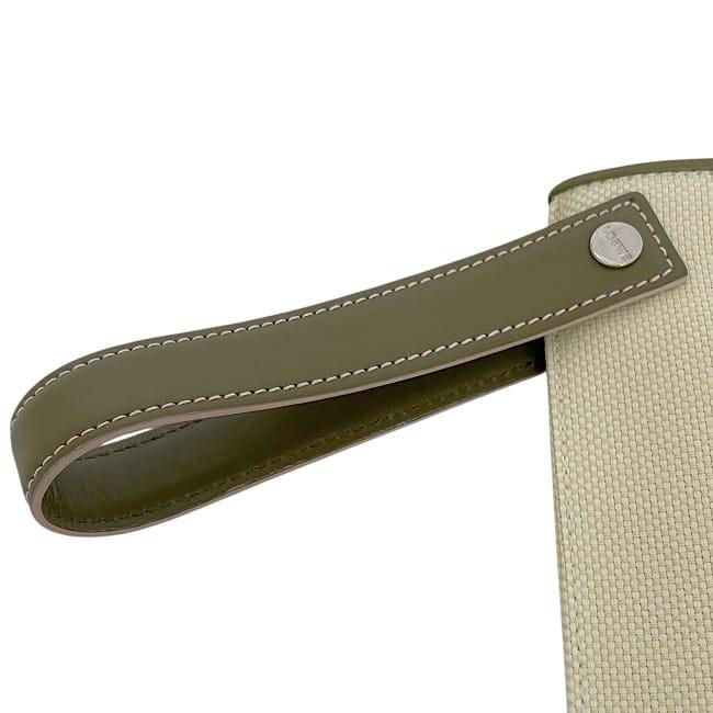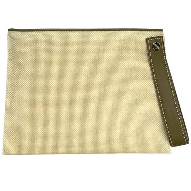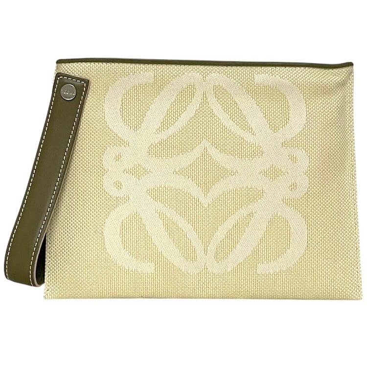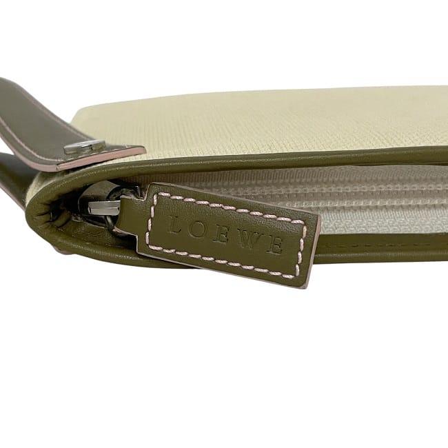 ロエベ ポーチ ec-23874 ナチュラル ベージュ カーキ アナグラム 美品 キャンバス レザー 中古 240402 LOEWE 小物入れ ヴィンテージ レア ロゴ メンズ レディース 男女兼用 人気柄 ヴィンテージ ファスナー マチなし シンプル ブランド 本物 鑑定済み