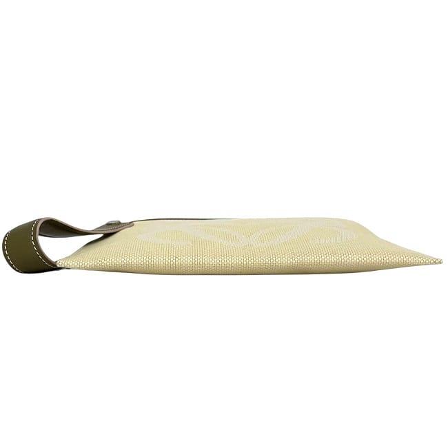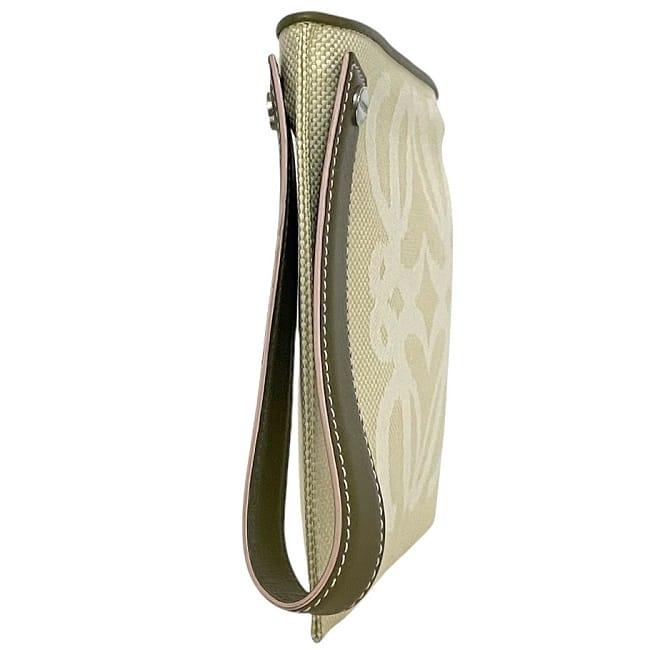 Pre-owned Loewe pouch in natural beige and khaki with an Anagram motif. Excellent condition. Made of canvas and leather. Item number 240402. A rare vintage Loewe accessory case with a logo. This unisex pouch features a popular vintage design, no gusset, and a zipper.