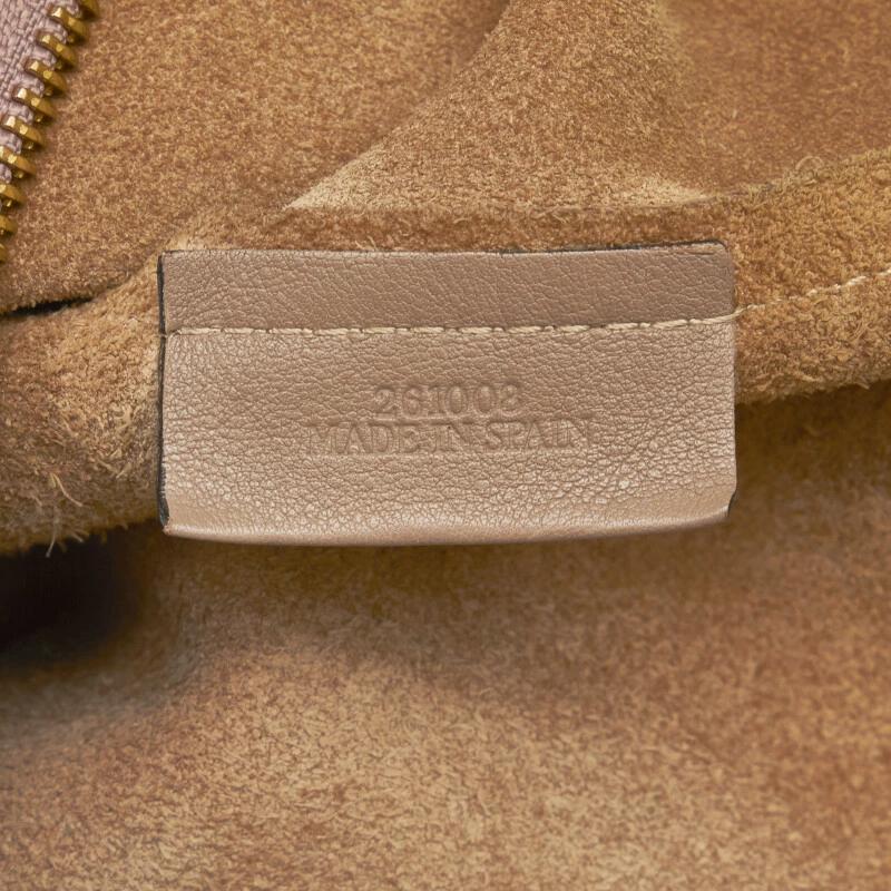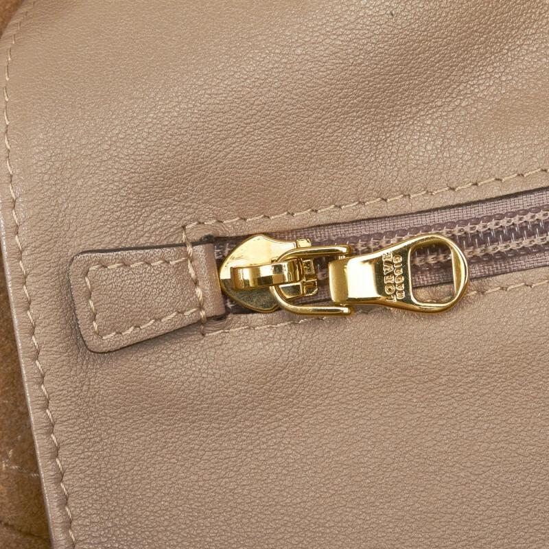 Pre-owned Loewe Madrid Anagram shoulder bag in pink-gray leather with gold hardware.