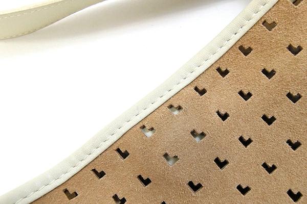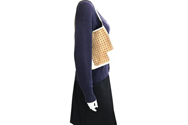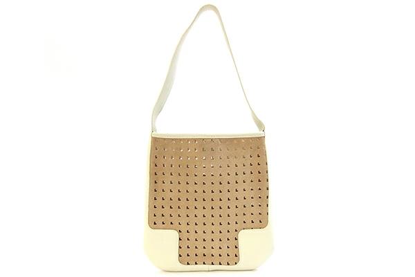 | 状態 | 外側:スウェードに薄スレ・薄汚れあり。レザー部分所々薄汚れ、ショルダーフチ(コバ)にヒビ割れ・剥がれあり。 内側:薄汚れあり。 金具:小キズ、スレ、クスミあり。 |