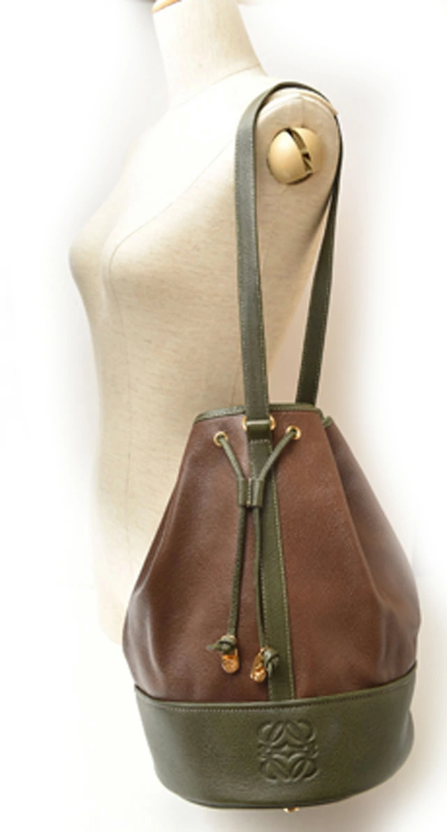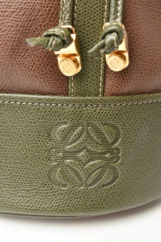 LOEWE バッグ アナグラム バイカラー ブラウン/ダークグリーン