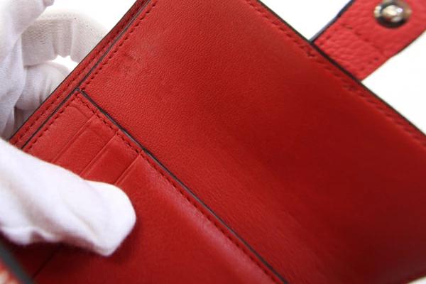 | 状態 | 外側:ストラップに薄キズあり。 内側:カード入れにカード跡あり。所々薄キズ、凹みキズあり。小銭入れにコイン跡、薄汚れあり。 金具:薄キズあり。 |