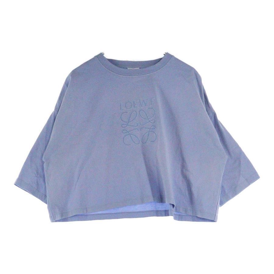 [モデル]胸アナグラムワッペン刺繍 ボクシーシルエットTシャツ 半袖クルーネックカットソー レディース ブルー S616Y22X81