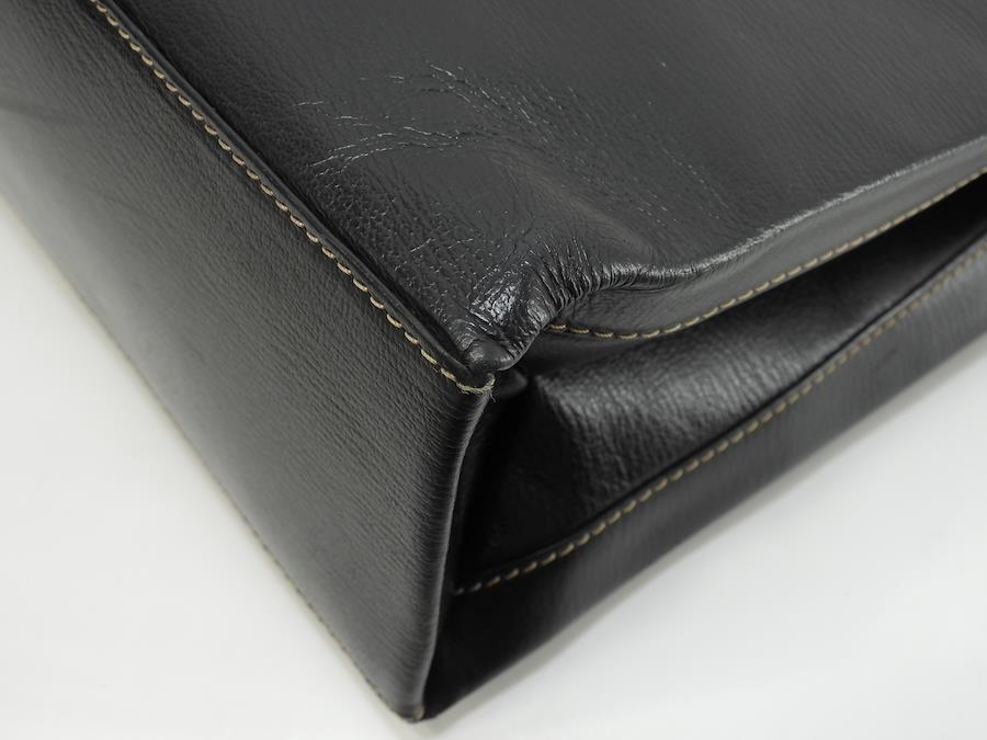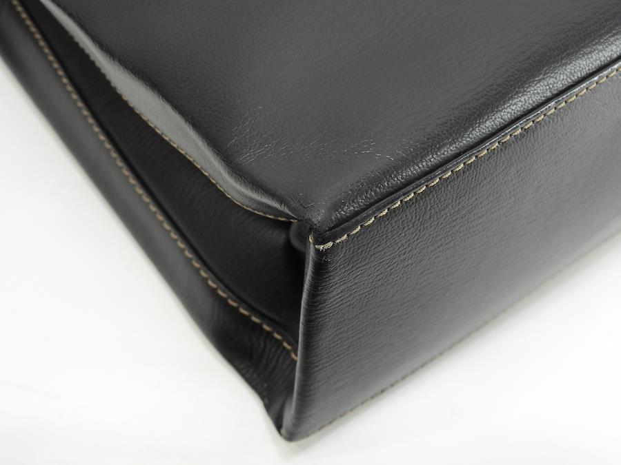 情報 : ボディは使用による型崩れ・薄スレ・薄汚れ・シミが全体的にちょこちょこございます。底部四隅角に薄スレが少しございます。ハンドルはメッキハゲ・薄スレが少しございますが、弱りはございません。ショルダーストラップは曲がり癖がございますが、汚れ・スレ・弱りはございません。バッグ内は薄スレ・薄汚れ・カビ臭が少しございますが、目立つダメージはございません。