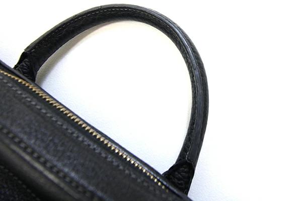 | 状態 | 外側:多少型崩れあり。ハンドルフチ(コバ)に薄ハガレ・メクレあり。 内側:スレ、薄汚れあり。収納臭あり。 金具:小キズ、スレ、底鋲に色落ちあり。 |