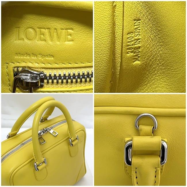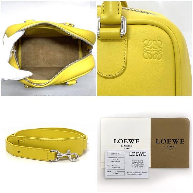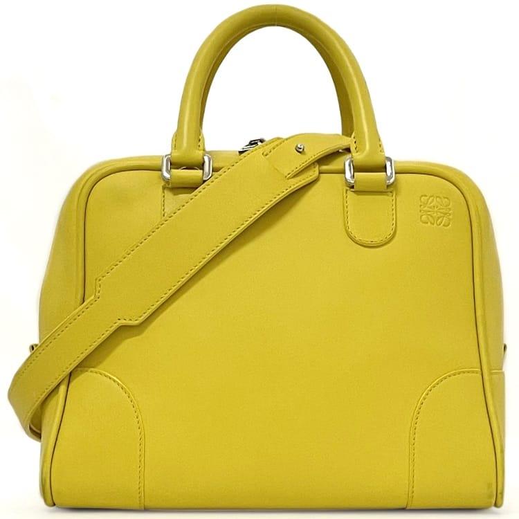 ロエベ 2way バッグ アマソナ 75 f-22917 イエロー アナグラム 301.30.L.03 美品 レザー 中古 261408 LOEWE ロゴ 黄色 肩掛け ハンドバッグ ファスナー シンプル 自立 大容量 クロスボディ ミニボストン 本革 ショルダーバッグ ブランド 本物 鑑定済み