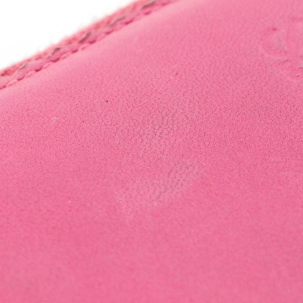Pre-owned LOEWE Anagram long wallet in pink lambskin with zipper, perfect for women. Condition: B-grade.