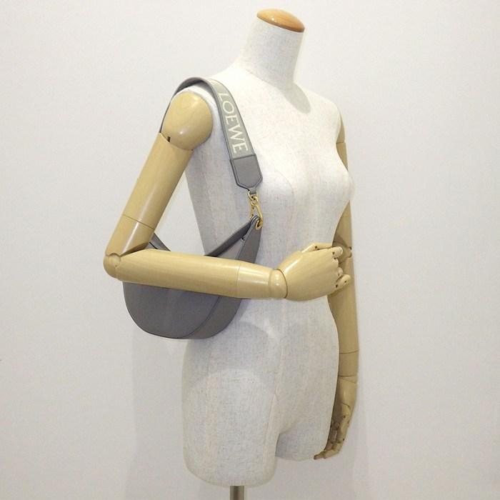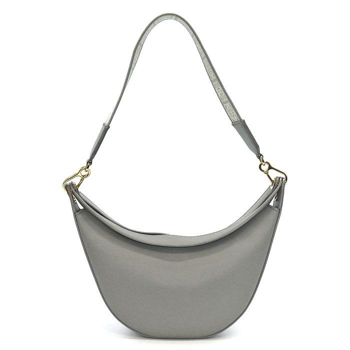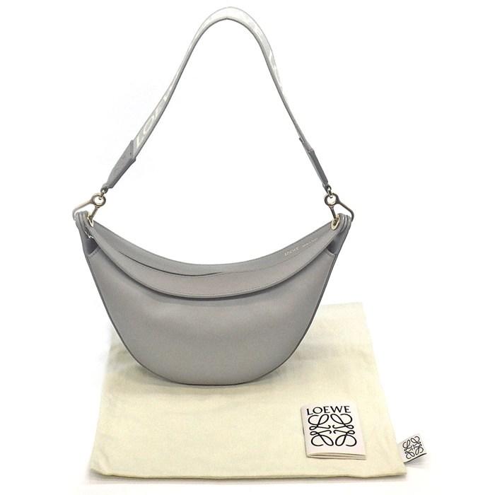 ロエベ LOEWE ショルダーバッグ・ホーボーバッグ ルナ スモール アッシュグレー A923PL9X07 サテンカーフスキン ゴールド金具 【中古】