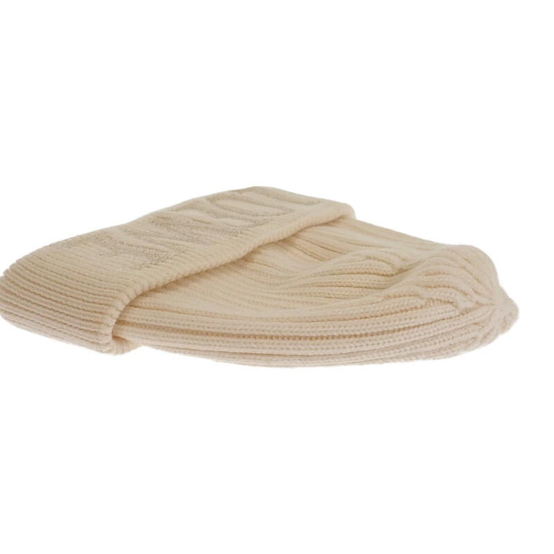 中番手のウールをリブ編みで編み上げ、適度なボリューム感とどんな髪型にも合わせやすいフォルムに仕立てたアイテム。