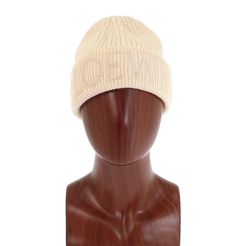 折り返し部分にぼかしデザインで刺繍されたLOEWEロゴが目を惹くニットキャップです。