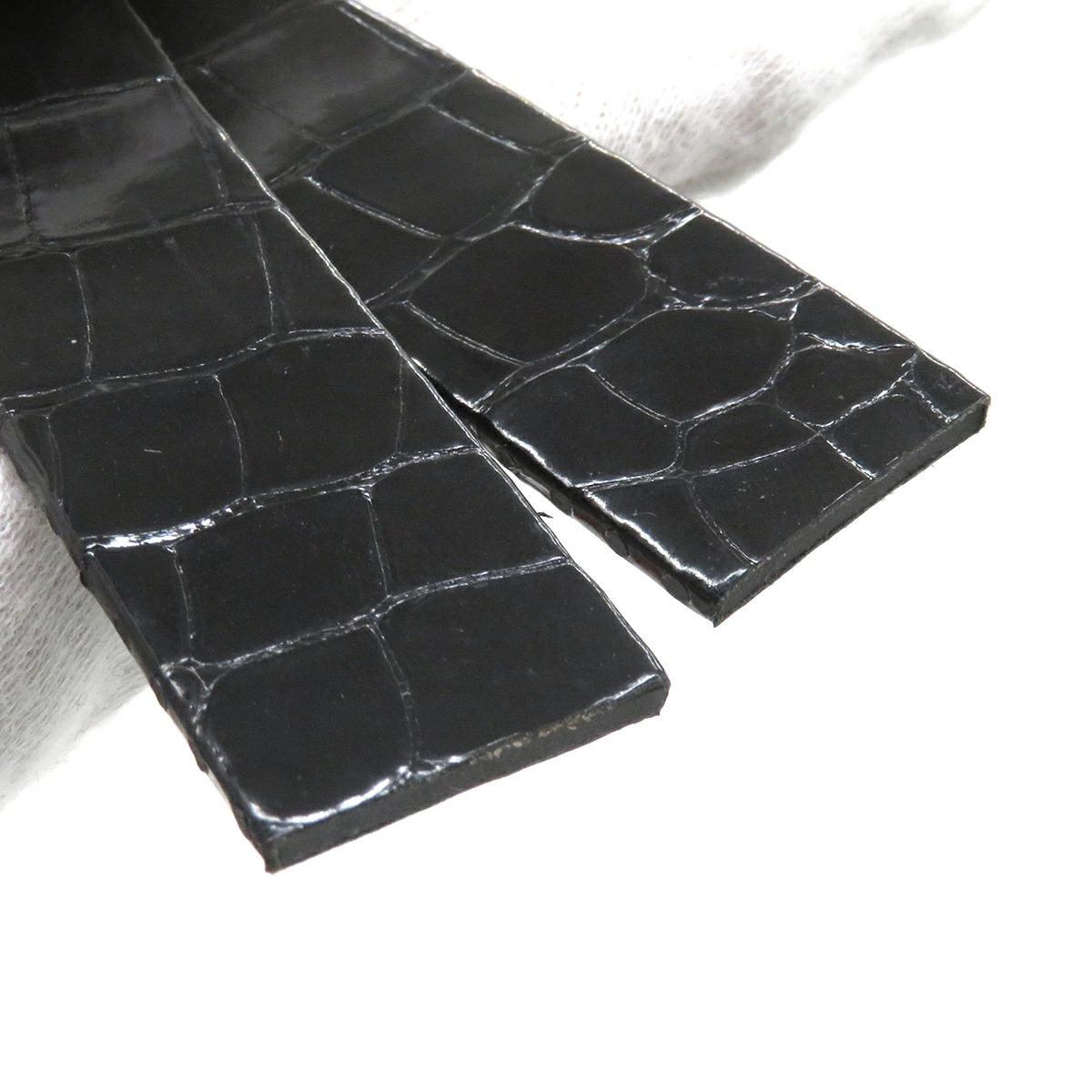 ▲クリックで拡大されますロジェデュブイ ROGER DUBUIS ゴールデンスクエア用 クロコバンド - 未使用 純正 替え ベルト ストラップ 28mm シャイニー ブラック 黒 メンズ 腕時計 【中古】【店頭受取不可】