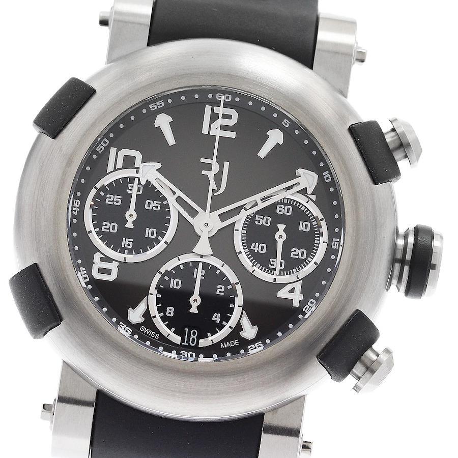 ■商品情報ブランド: ロマン ジェローム/ROMAIN JEROMEモデル名: アローマリン対象: メンズ素材: チタン × ラバー文字盤色: ブラックムーブメント:自動巻きRef.No: 1M42C.TTTR.1517.RBシリアル:700***機能・特徴:デイト,クロノグラフ,スモールセコンド付属品:外箱,内箱,取扱説明書ケースサイズ(w):約 42mmベルトサイズ:約 18cm※ベルトサイズとは、ケース部分も含めた総腕回りのサイズになります。ラグ幅: 18mm日差: ±0秒/日 ※参考値OH歴: 弊社では実施しておりません。