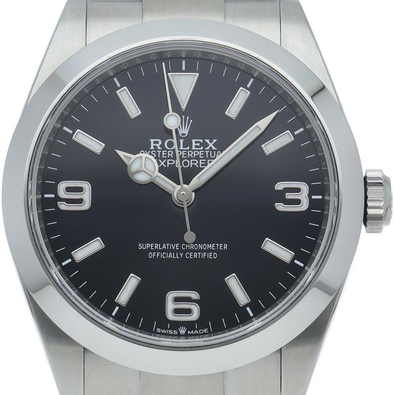 商品説明:1953年に誕生した冒険家の為の時計、オイスターパーペチュアル エクスプローラー40。ムーブメントには、高いエネルギー効率と信頼性を両立させるロレックス特許のクロナジーエスケープメントを採用し、シリコン製ヘアスプリングと高性能パラフレックスショックアブソーバを装備した70時間パワーリザーブのキャリバー3230を搭載しています。2023年登場の新型モデル。