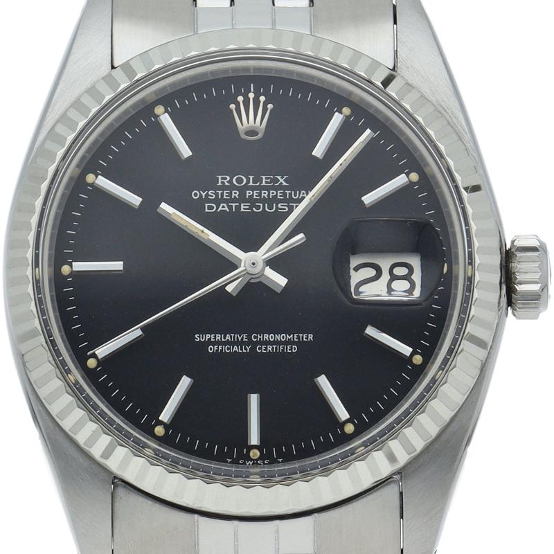 商品説明:ロレックスのドレスウォッチの王道「デイトジャスト」。ホワイトゴールドとステンレスの組み合わせが高級感を感じさせる1本です。プラスチック風防仕様。文字盤はレッドアイダイヤルで、非常に希少なダイヤルです。ルーペで見ると赤色の粒子が確認できます。