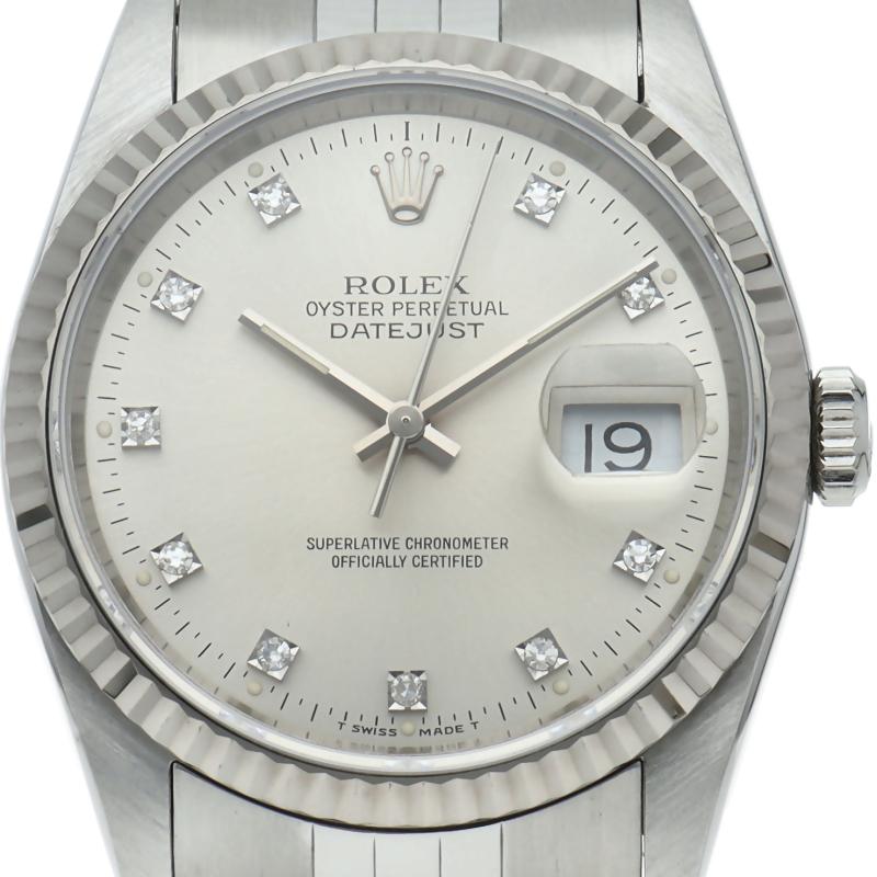 Rolex Datejust Men's Watch with 10 Diamonds, 16234G(E), Box, 18K White Gold/Stainless Steel, Silver, Finished, 1