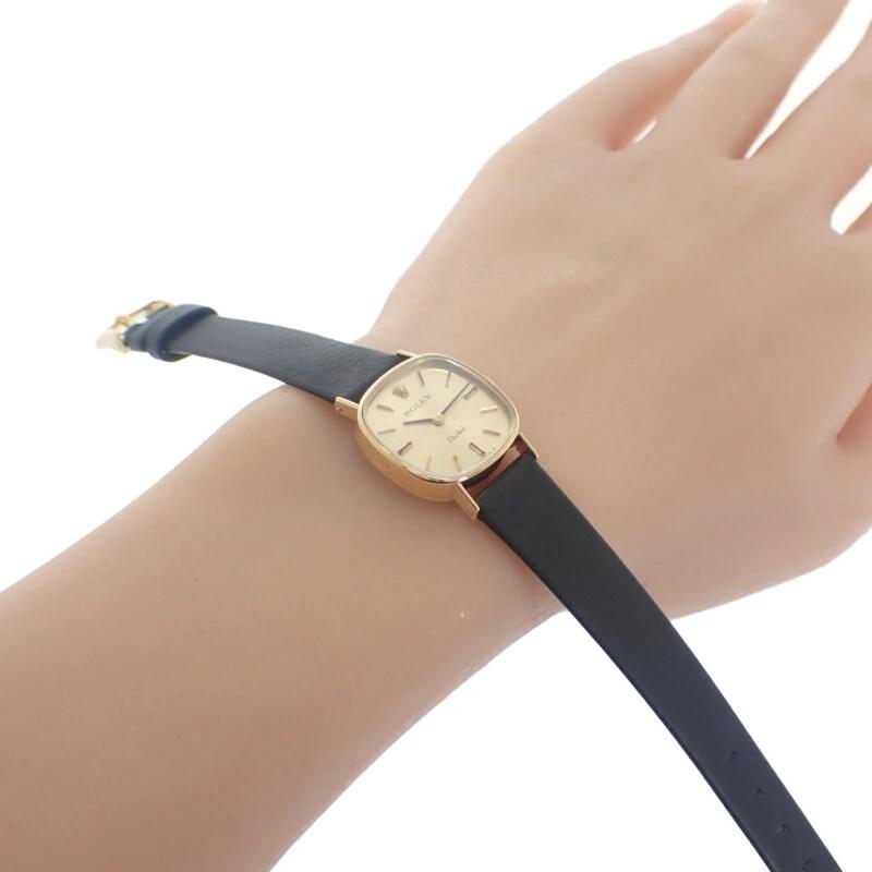 丸みを帯びたスクエアケースが、手元を華奢に見せるエレガントな雰囲気を感じさせます。