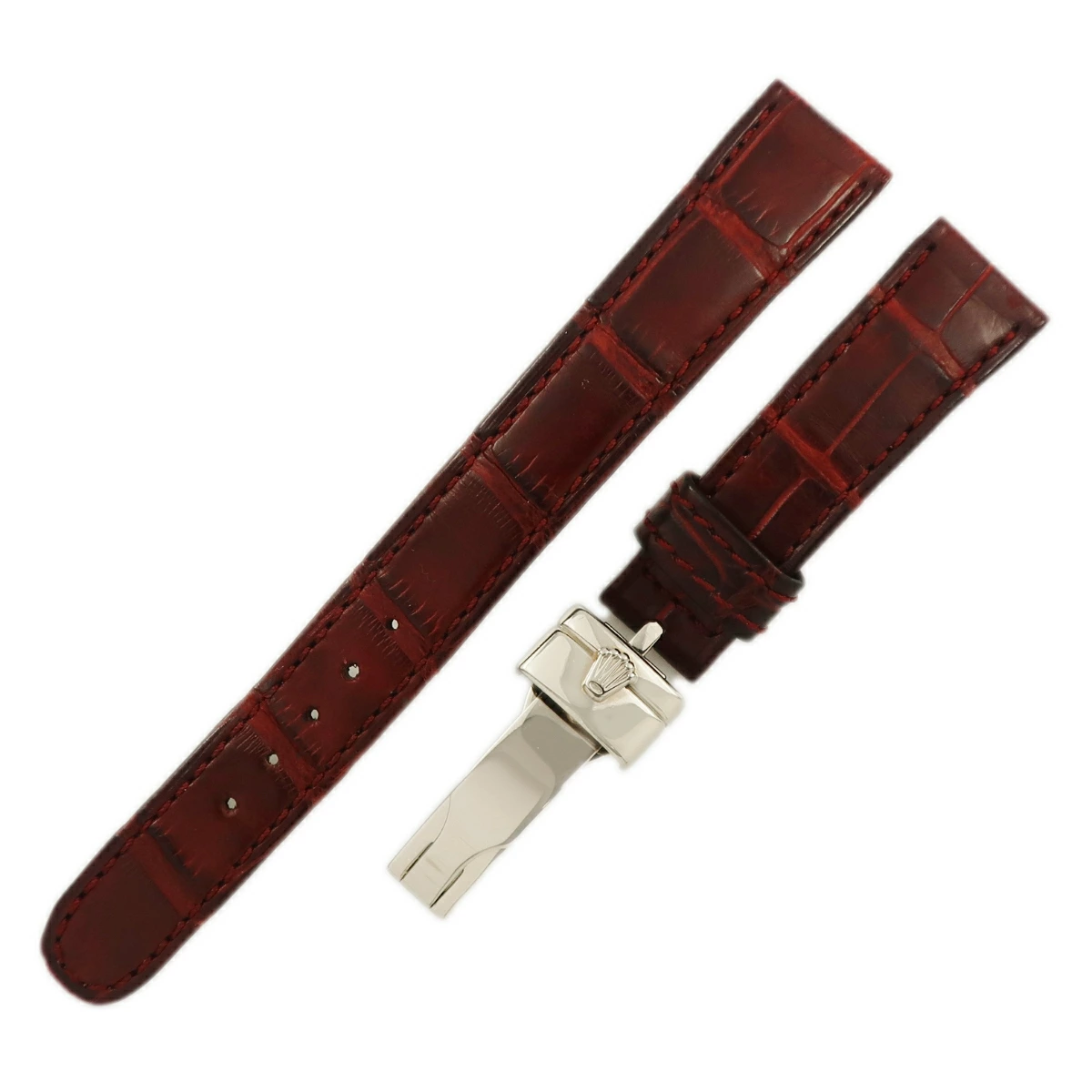 Earn 10x points! Genuine Rolex Cellini crocodile strap with genuine 18K white gold buckle, 15mm, red, for men and women. [Pre-owned]
