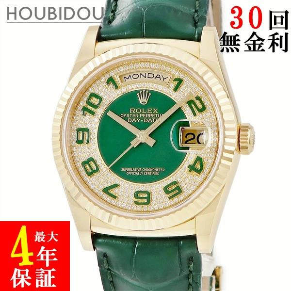 ロレックス ROLEX デイデイト 36 118138 ランダム番 K18YG無垢 純正ダイヤ グリーン 緑 アラビア メンズ 腕時計自動巻き グリーン 【中古】【店頭受取不可】