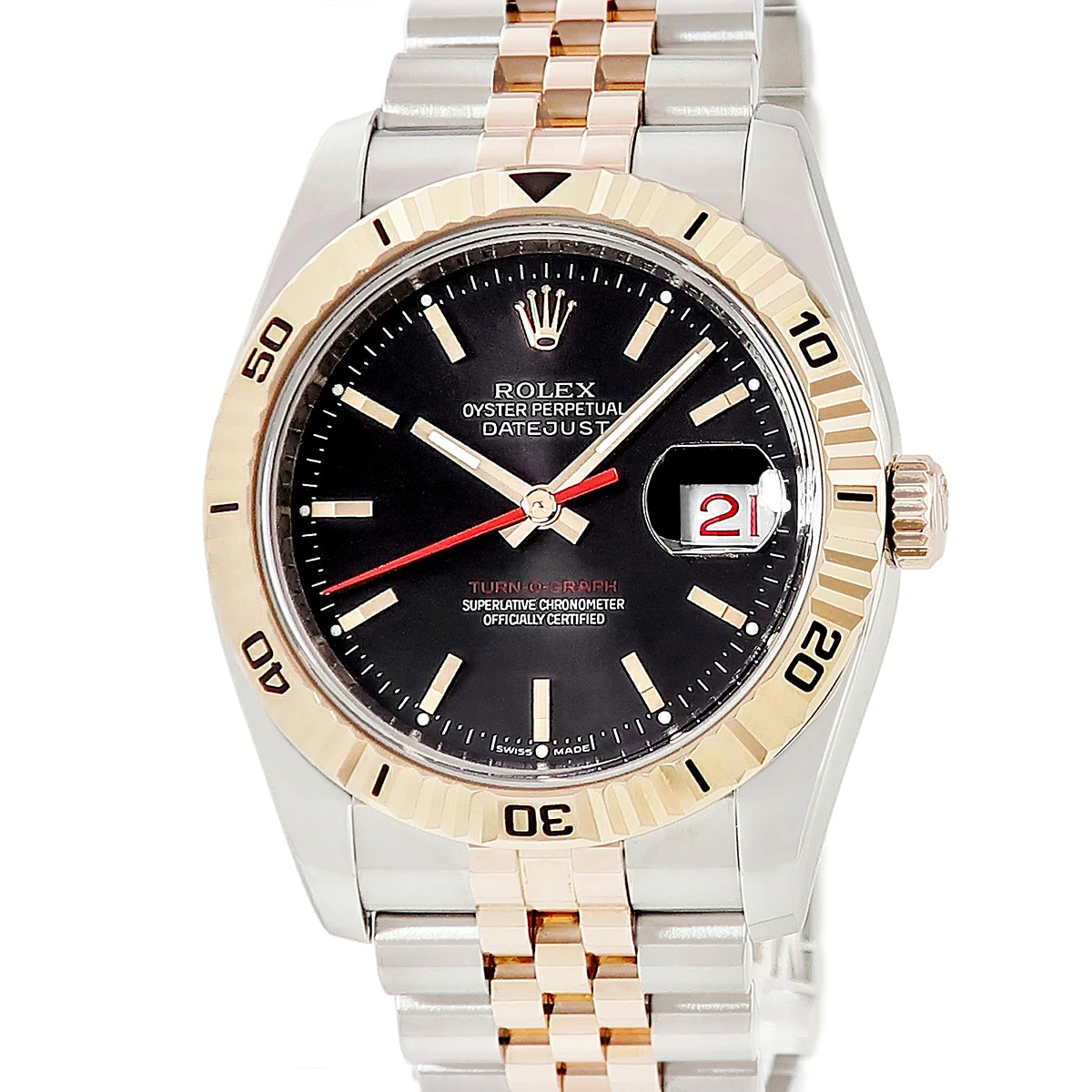ロレックス ROLEX デイトジャスト ターノグラフ 116261 D番 K18エバーローズゴールド×SS コンビ 黒 バー メンズ 腕時計自動巻き ブラック 【中古】【店頭受取不可】