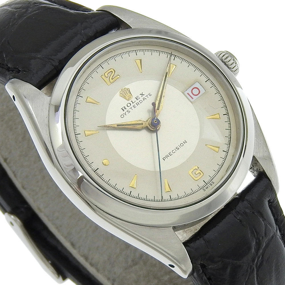 Pre-owned Rolex Precision Oysterdate Men's Watch, 21st Series, 6494, Stainless Steel with Embossed Leather, Manual Winding, White Dial, B-Rank