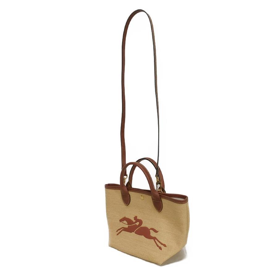 | ストローエフェクトのキャンバスにロンシャンのホースモチーフがステッチされた「ル パニエ プリアージュ S」ハンドバッグです。取り外し可能なストラップでショルダーバッグとしてもお使いいただけます。 |