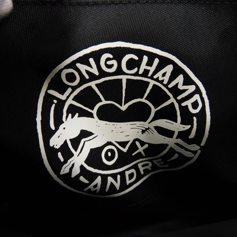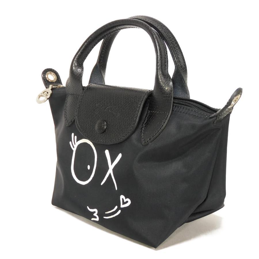 アンドレサライヴァの「Mr.A」キャラクターがデザインされた、ナイロン素材にロンシャンのロゴとホースモチーフがエンボス加工された「ル プリアージュ XS」コンパクトなサイズのハンドバッグです。