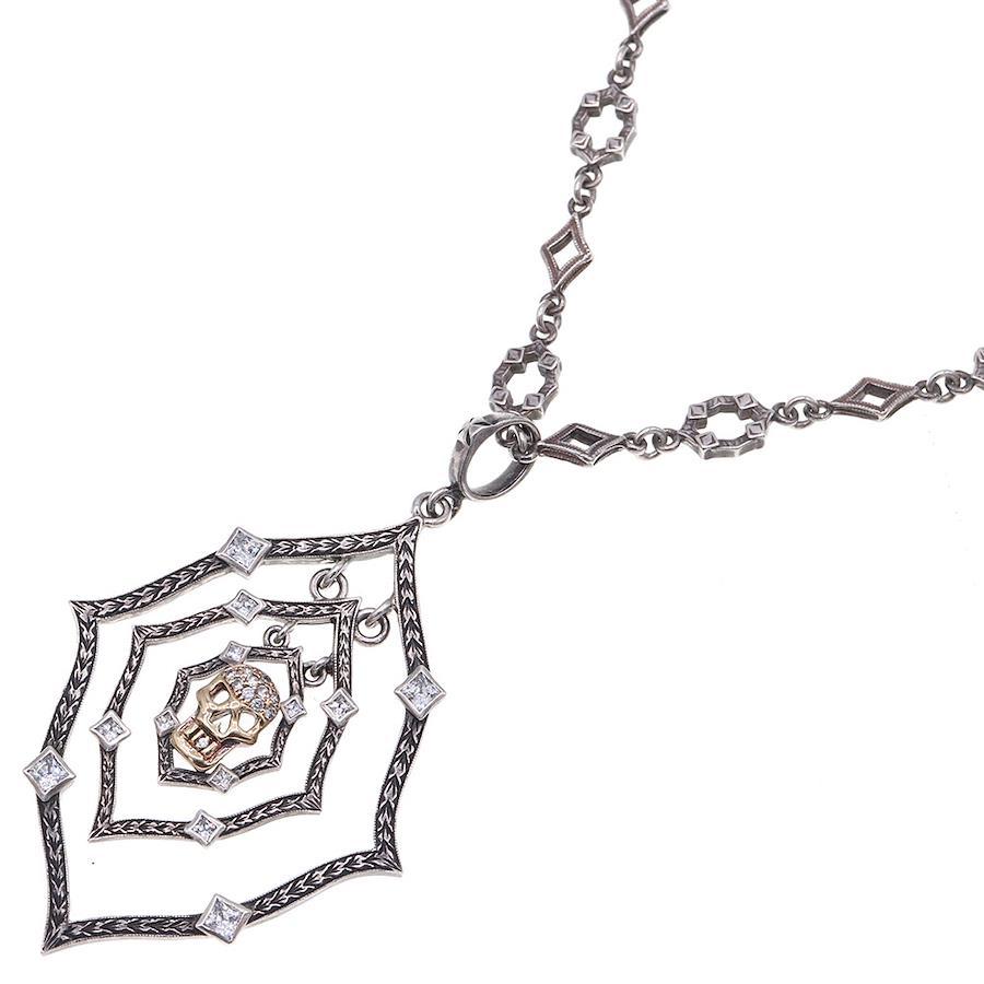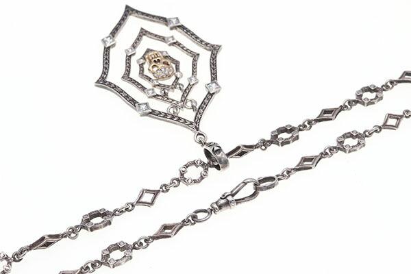 ローリーロドキンネックレス土屋アンナコラボスパイダーウェブスカル01SONA2786K18SVYGスターリングシルバーイエローゴールド中古ペンダントチョーカー限定レアドクロ骸骨LoreeRodkin