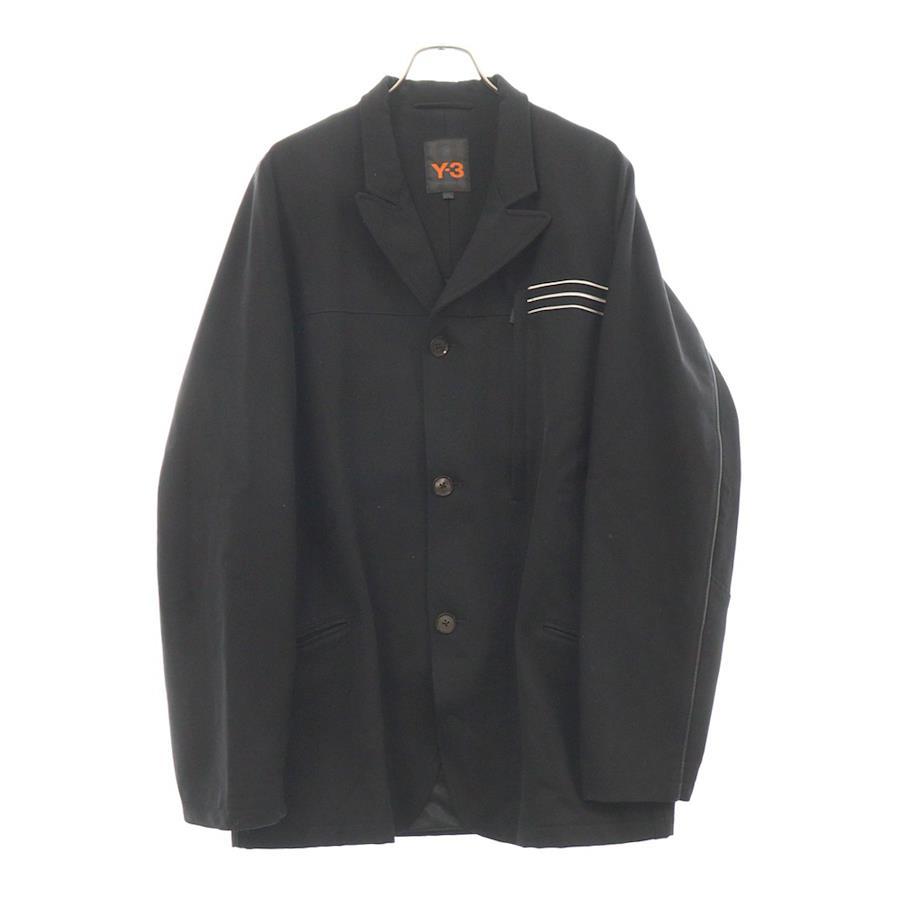 [モデル]ウール ストライプデザイン マルチポケット 3B ロングテーラードジャケット ブラック