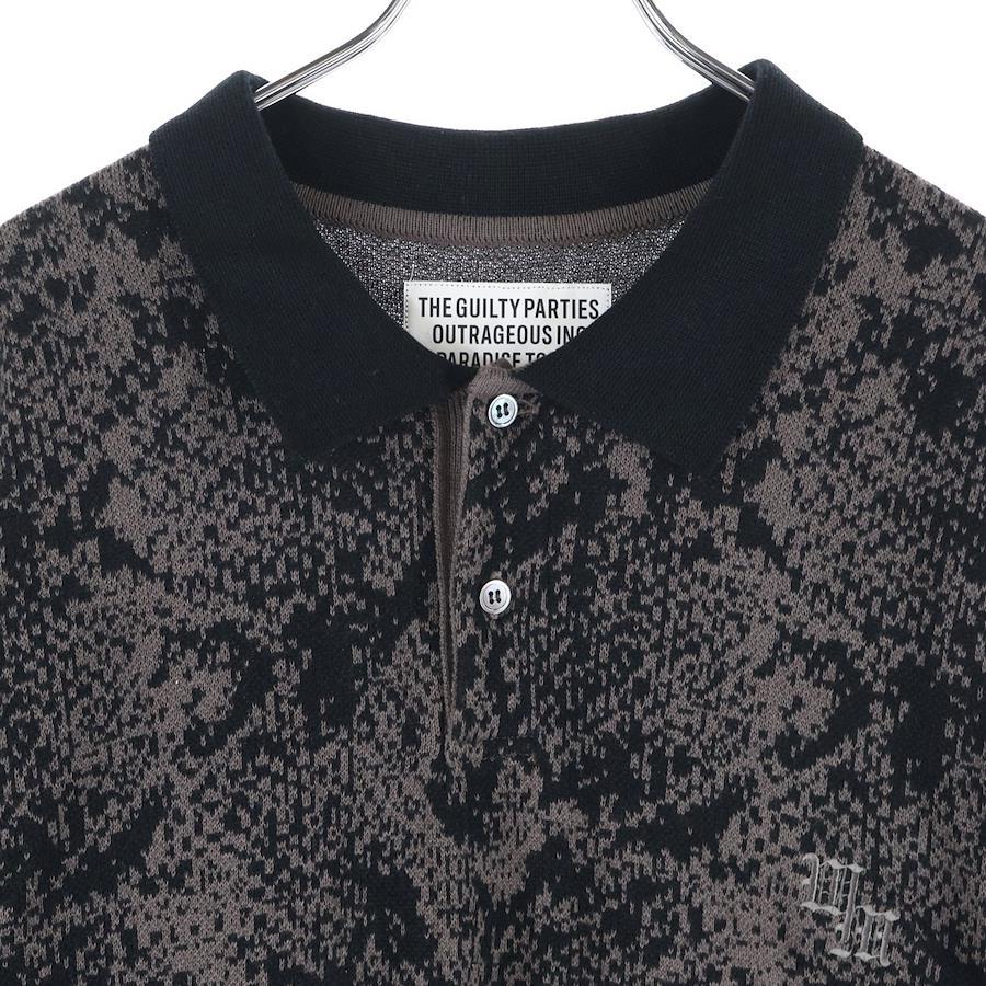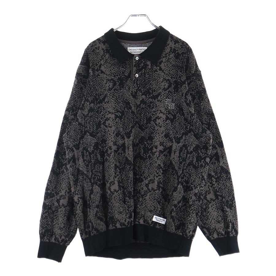 [モデル]22AW PYTHON KINT POLO SHIRT 22FW-WMK-KN20 パイソン柄 長袖ポロシャツ ブラウン