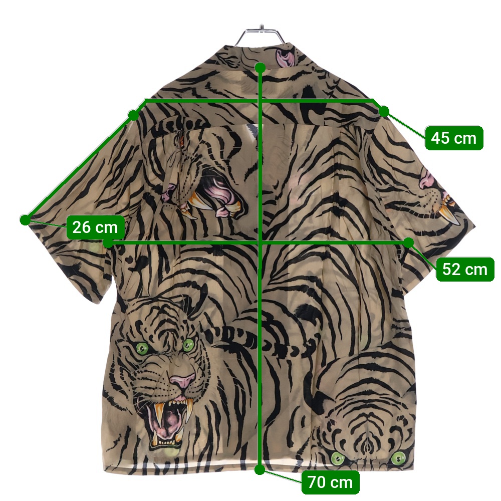 [モデル]22SS × TIM LEHI HAWAIIAN SHIRT S/S ティムリーハイ タイガープリント 開襟シャツ 半袖シャツ ブラウン