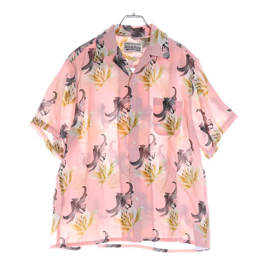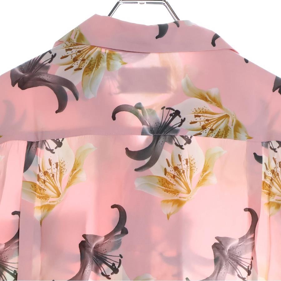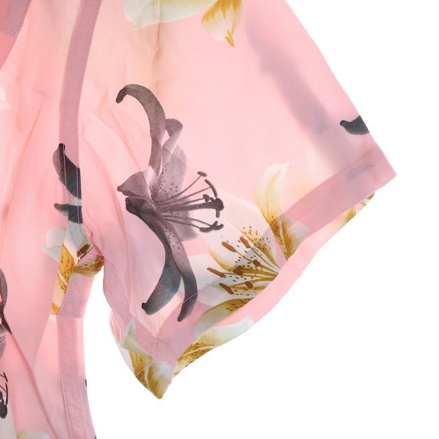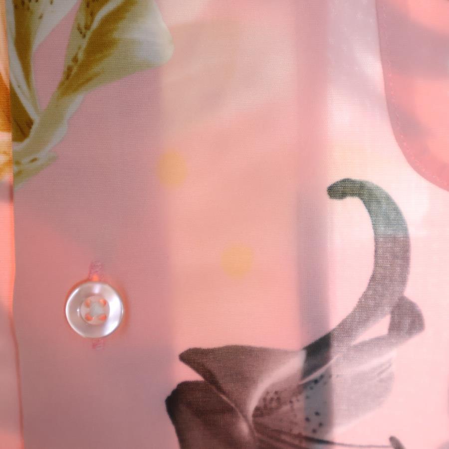 [モデル]HAWAIIAN SHIRT S/S 百合プリント 開襟シャツ 半袖シャツ ピンク